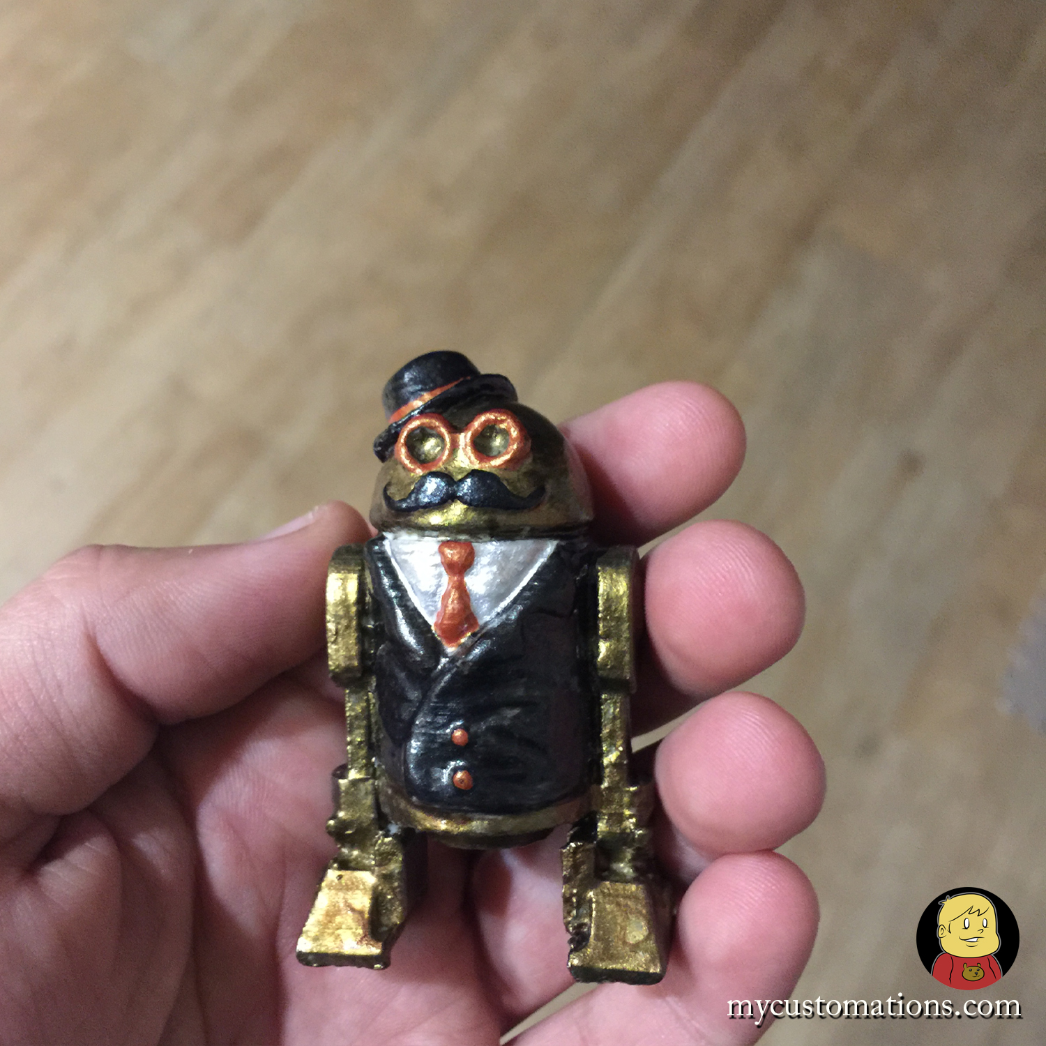 Mr. Robo Burns is a resin figure created by artist Cesar D. This figure was digitally sculpted using Zbrush, 3D printed and then casted in resin for the final product. Figure is hand painted using metallic acrylic paints and then sprayed with a gloss varnish for protection. Figure is approximately 2.5 inches tall. Figure comes in a custom made header card.