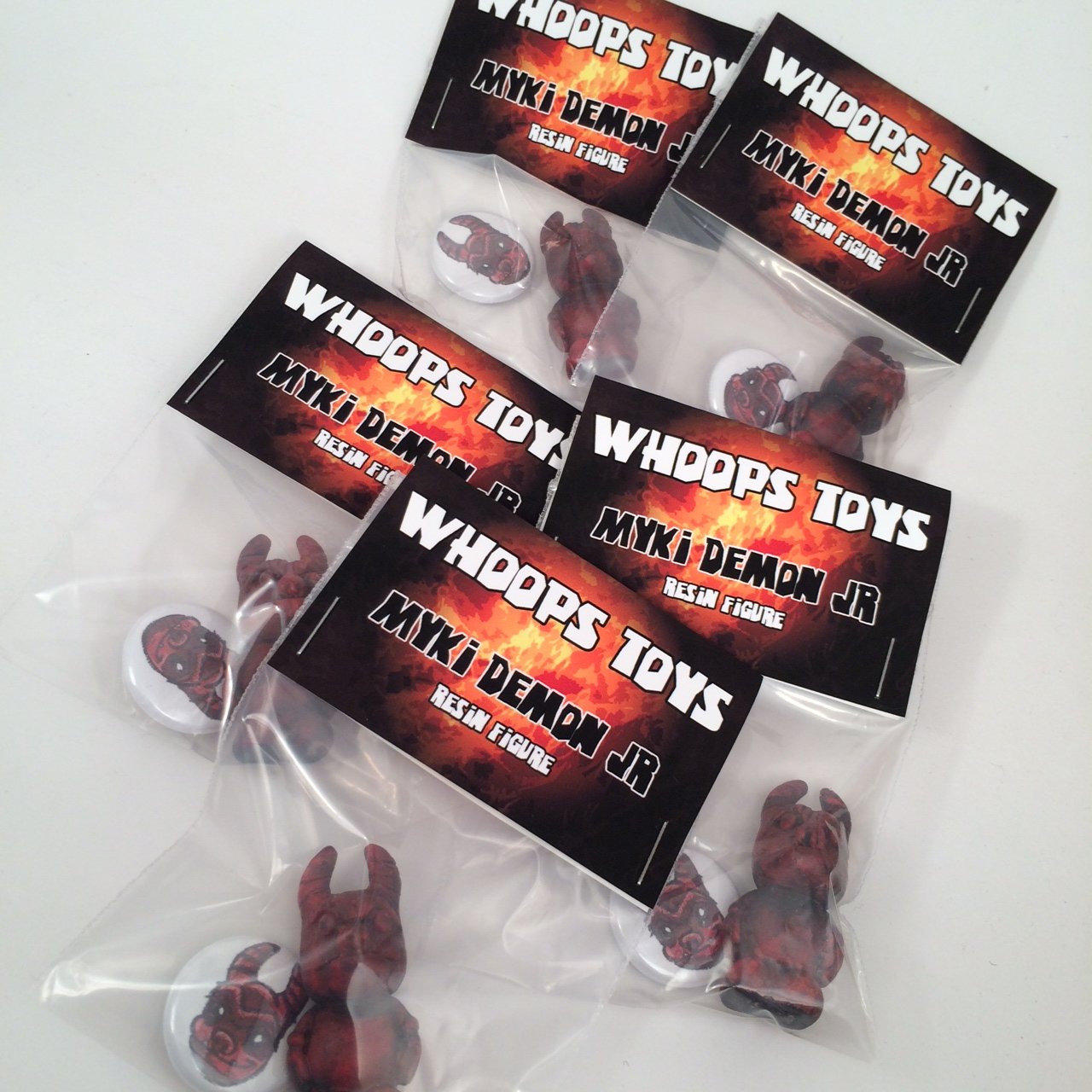 Myki Demon Jr. is an original character hand sculpted by artist Cesar D and then cast in resin. Each figure is 1.4" in height and comes with a limited edition 1" pin back button. Figure is hand painted using acrylic paint.