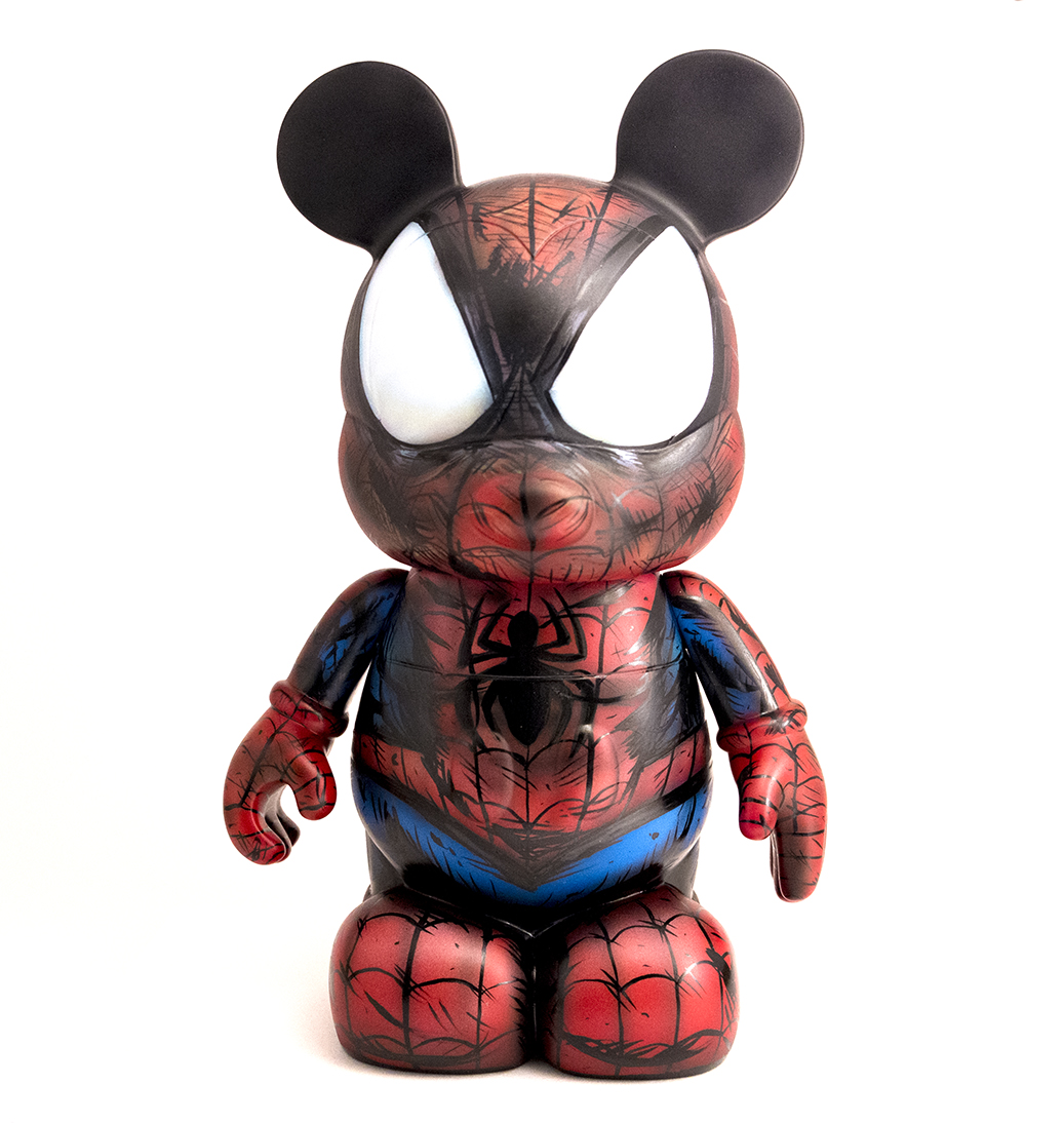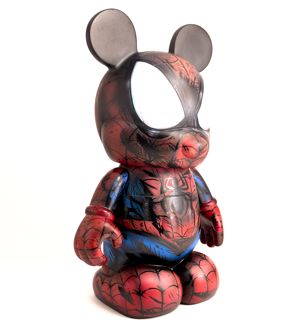 Spiderman 9" custom Vinylmation is airbrushed by artist Cesar Diaz. All the line work is painted using high end acrylic paint. Figure has been sprayed with a semi-gloss varnish for protection against dust. This piece is 1 of 1 in the entire world and will never be recreated again. Don't miss out on the opportunity to own this one of a kind work of art.