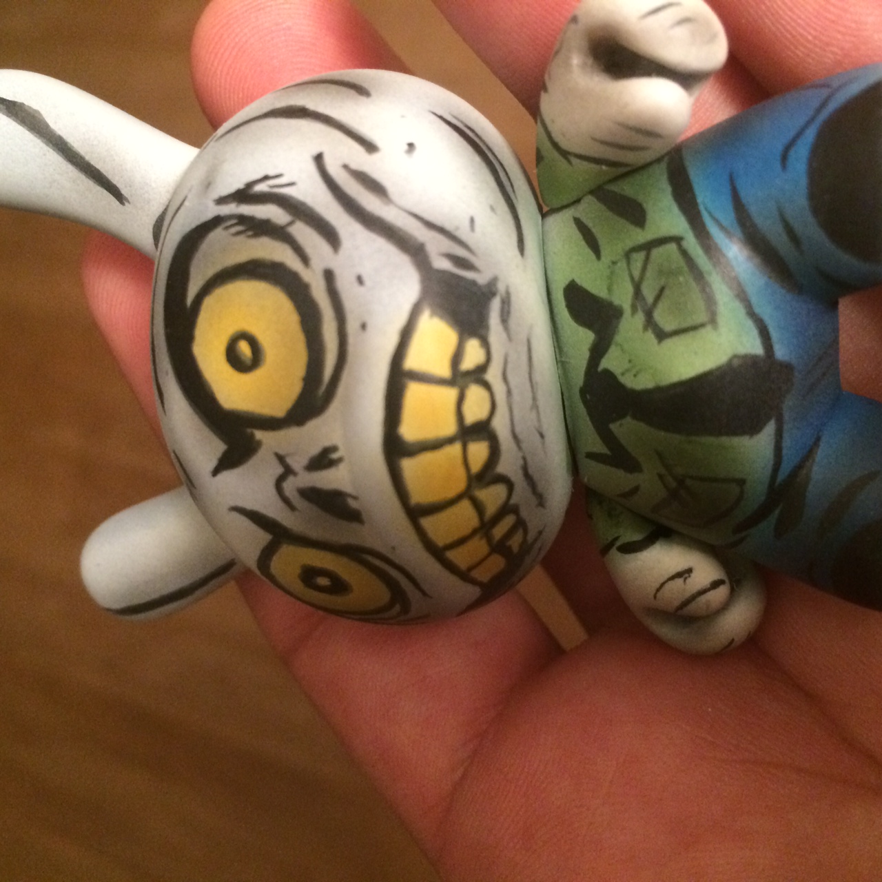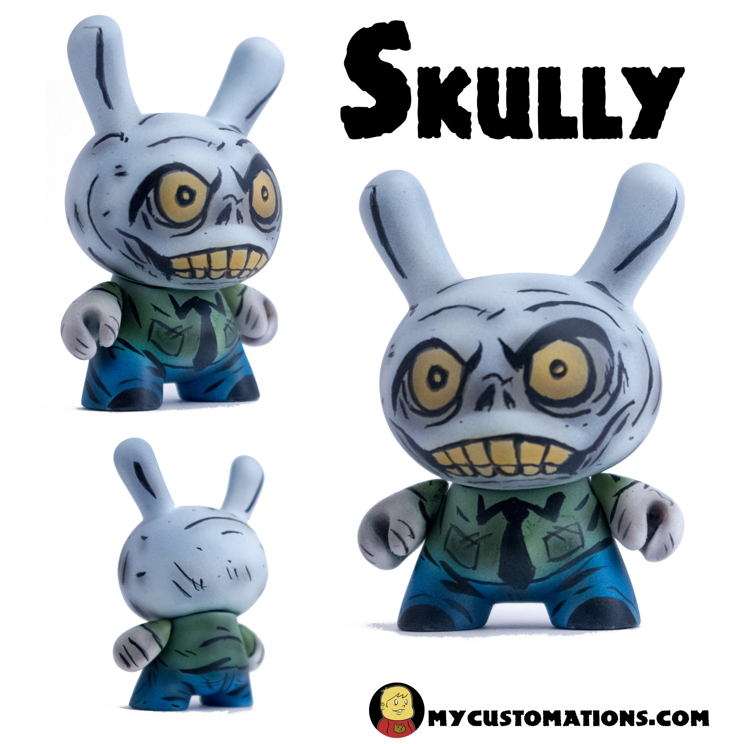 Skully custom 3" Dunny is airbrushed by artist Cesar Diaz. All the line work is painted using high end acrylic paint. Figure has been sprayed with a matte varnish for protection against dust. Don't miss out on the opportunity to own this one of a kind work of art.